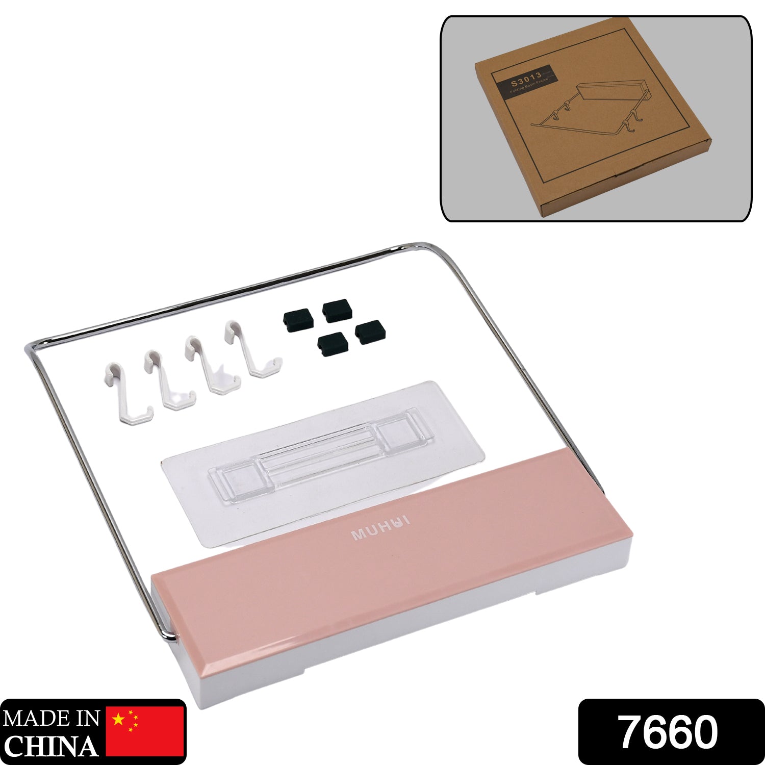 7660 Wall Mounted Foldable Wash Basin Storage Rack Shelf Holder Self Adhesive with sticker