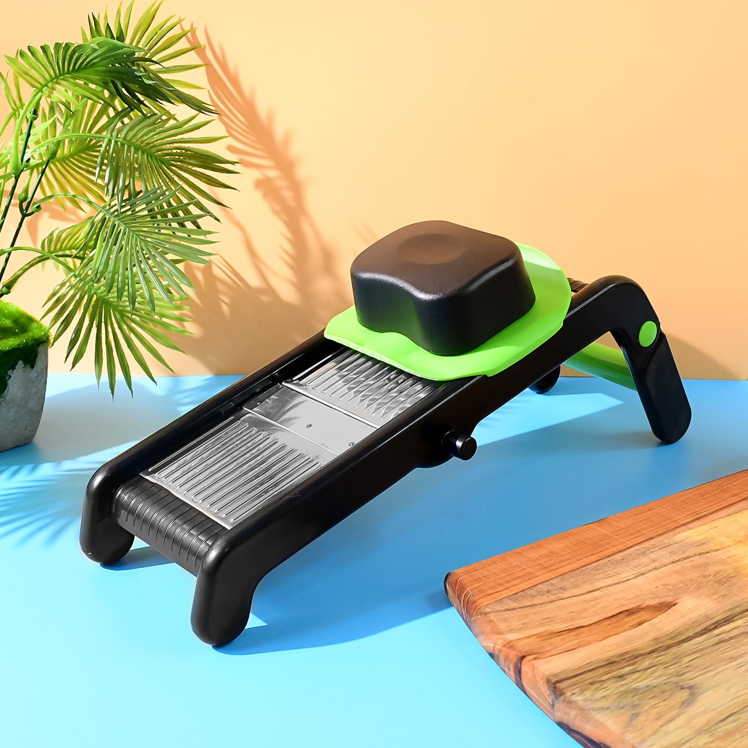 The ergonomic design with a safety food holder prevents hand injuries, while the non-slip base provides stability during use. Whether you are preparing salads, chips, garnishes, or everyday meals, this slicer makes the task quicker, easier, and safer. A must-have for every modern kitchen.